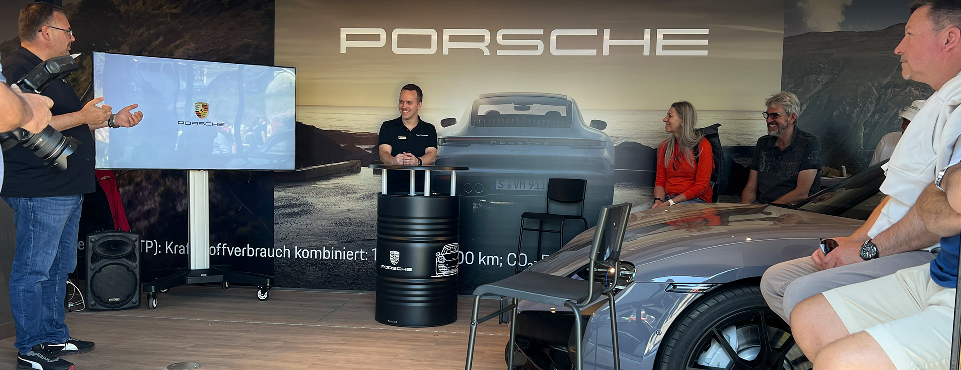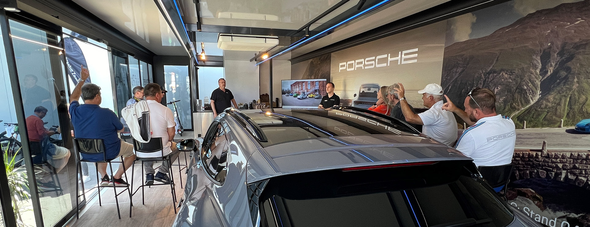 Damit die Interessenten und Besucher auch Informationen zu den Sportwagen der Dreaming in Colour Flotte erhielten, gab es an allen 3 Eventtagen einen Porsche Talk mit unserem Technologie Experten. Dabei wurde auf alle Modelle eingegangen und deren Geschichte auf interessante Art und Weise beleuchtet. Natürlich waren auch das Thema Porsche E-Performance sowie die umfangreichen Optimierungen der beiden neuen Leistungssportler, Panamera und Taycan, ein wichtiger Aspekt der Talkrunde.