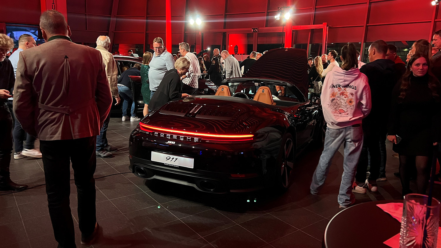 Und dann folgten auch schon die Höhepunkte des Abends: Unsere 2 facettenreichen Sportwagen hatten ihren großen Auftritt. Der neue Macan ist urban, sportlich und elektrisiert Jung und Alt gleichermaßen. Als kompakter SUV ist er wie geschaffen für das pulsierende Stadtleben, denn er bringt Ruhe in den hektischen Alltag und sorgt gleichzeitig für einen dynamischen Start in den Tag. Sein Design ist erkennbar unverkennbar geblieben. Mit einer geschärften Front und ikonischen Kotflügeln außen sowie einem großzügigen Platzangebot im Innenraum.