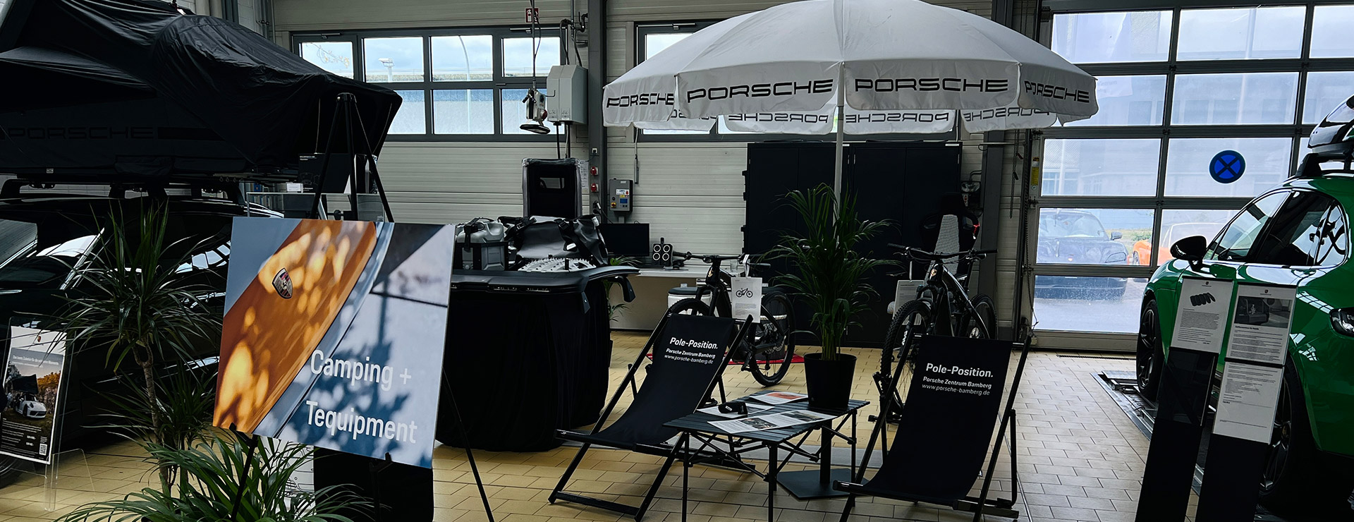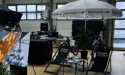Wer die neuen Sportwagen dann ausgiebig begutachtet und kennengelernt hatte, der konnte sich bei der Präsentation des Aftersalesbereichs in der Werkstatt vom umfangreichen Porsche Tequipment Sortiment inspirieren lassen. Insbesondere die Produkte, die sich für das Camping in der warmen Saison empfehlen, standen dabei im Fokus.